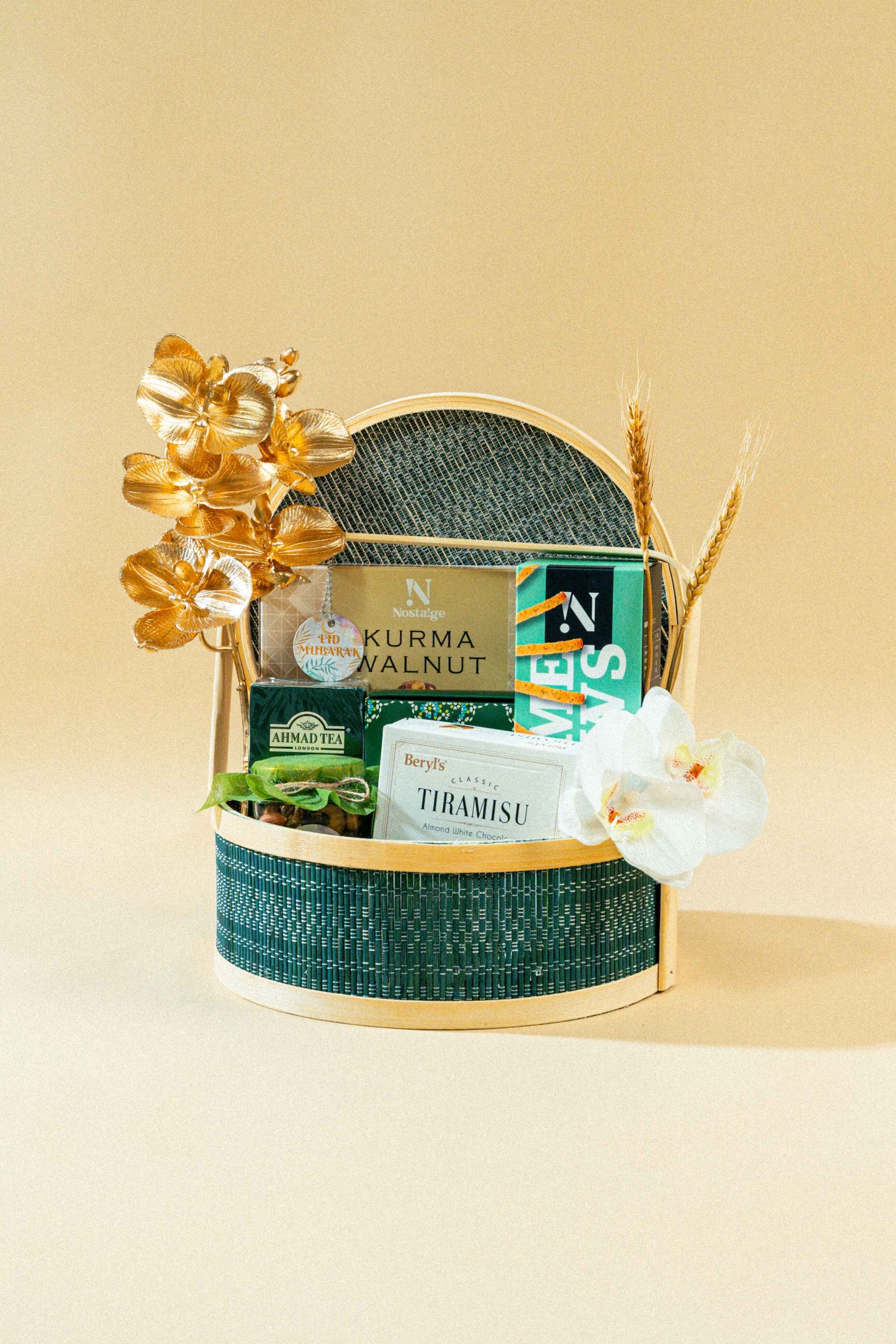 X1 Green Stripe Hand-carry Bamboo Basket